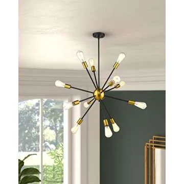Show moreThe JAZAVA Modern Sputnik Chandelier is more than just a light fixture; it's a statement piece that redefines elegance and modernity in your home. With its stellar 12-light starburst design, this chandelier captures the imagination while illuminating your space with style. Its adjustable lever and height features make it an ideal choice for various rooms—be it your kitchen, dining area, or foyer—transforming any environment with its exquisite flair.