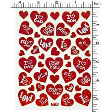 Jazzstick 10-Sheet Valentines Heart Stickers Glitter Red & Colors Value Pack Bulk 05