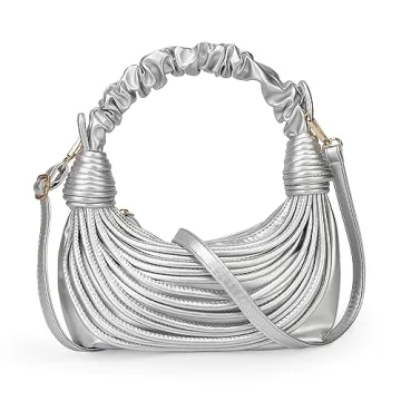 JBB Women Silver Shoulder Purse - Knotted Woven Tote Hobo Bag Evening Party Leather Satchel Handbag with Zipper