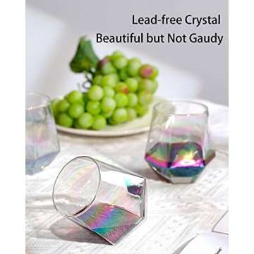 JBHO Iridescent Wine Decanter Set with Glasses, Stemless Wine Glasses Set of 4, 10 Oz, Cute and Rainbow, Crystal Wine Carafe, Serving Red and White Wine, Unique Wedding Anniversary or Birthday Gift