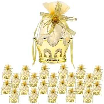 Measuring 2 inches wide, 2 inches long, and standing tall at 5 inches, these crowns provide ample space for filling treasures like candies, chocolates, or small toys, ensuring guests leave with a memorable takeaway. Children will be enchanted by the shiny crowns, while adults will admire their sophisticated charm. Built from durable materials, these crowns are reusable, allowing you to continue the royal charm at future gatherings, providing great value in every celebration.