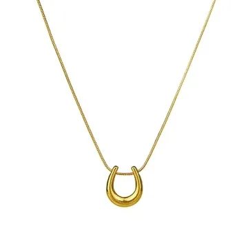 JczR.Y Stainless Steel Horseshoe Necklace - Elegant Gold U Shaped Jewelry Pendant