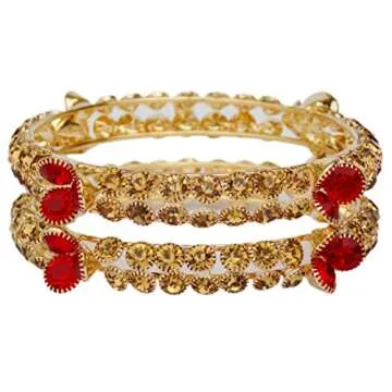 JD'Z COLLECTION Indian Jewelry Bangles CZ Stone Bangles Red Gold Bangles Traditional Bangles Flower Design Bangles For Women,Girls Bangles For Marriage Party (2.6) 2pcs Set