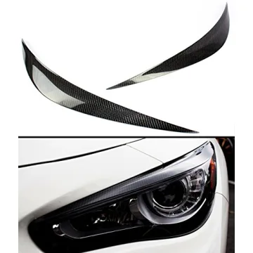Show moreTransform your driving experience with our JDM Black Real Carbon Fiber Headlight Eyelids Covers, specifically designed for all 2014-2022 Infiniti Q50 models. Crafted from genuine carbon fiber material, these eyelids not only enhance the aesthetic appeal of your vehicle but also ensure a lightweight and high-performance addition to your car. With a precision fit that directly matches your original headlights, these covers seamlessly blend form and function, exuding a sleek, modern vibe that stands out on the road.