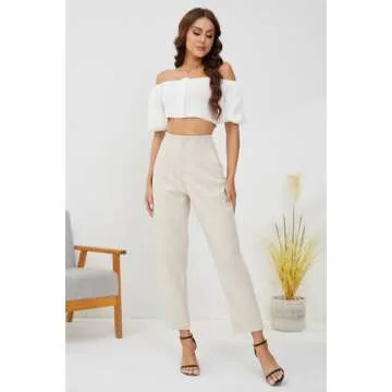 JEAAMKSSER Women's High Waisted Business Trousers Straight Leg Pleated Office Slacks Pants Beige S