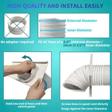 Show moreIntroducing the JEACENT Portable Air Conditioner Window Kit, specifically designed to support your portable AC units efficiently. Perfect for exhaust hoses with an external diameter of 5.9 inches and an internal diameter of 5.5 inches, this adjustable sliding AC vent kit extends up to 60 inches (160cm), ensuring a versatile fit for most window sizes. The innovative seamless design grips tightly, preventing any hot air from re-entering your space, maximizing your cooling experience. Crafted from high-quality, thicker PVC, this durable window seal kit is not only effective but also energy-efficient, helping you keep your room cool for longer, ultimately saving on electricity charges.