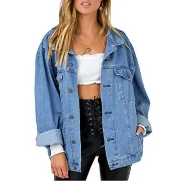 Jean Jacket Women Oversized Denim Jacket (L, Light blue washed)