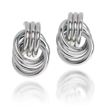 Show moreIntroducing the JeanBeau Statement Silver Knot Stud Earrings—an exquisite fusion of modern fashion and timeless vintage charm. Crafted from high-quality white gold plated brass, these stunning earrings feature a unique twisted design composed of six interlinked rings. The innovative construction not only catches the light beautifully but also delivers a delightful allure that's sure to enhance any outfit. Weighing in at a remarkably lightweight feel, they offer maximum comfort with their push-back closure, making these earrings a must-have for every trendsetter.