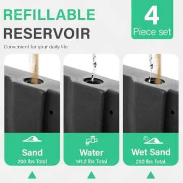 The JEAREY base is rugged and weather-resistant, built using HDPE plastic and treated with a weather-resistant coating to withstand harsh outdoor conditions. This means you can confidently use it in various weather scenarios without compromising on stability or durability. Expertly designed, the bases can hold up to 35.3 lbs of water or 57.5 lbs of sand per plate, ensuring that your patio umbrella remains upright even in high winds.