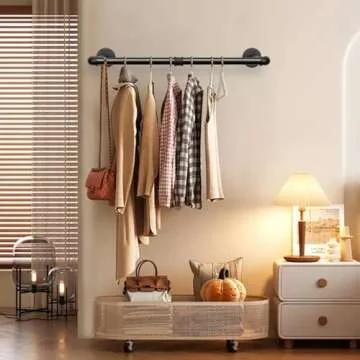 Jeasor Industrial Iron Pipe Clothes Hanging Bar DIY Wall-Mounted Garment Rack Heavy Duty Clothing Rack for Bedroom, Laundry Room, Closet Storage