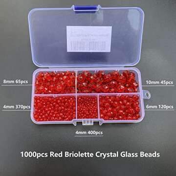 Show moreIntroducing the JEBBO 1000pcs Red Glass Beads, the ultimate crafting companion for all your jewelry making dreams! These exquisite faceted rondelle beads are made from high-quality glass, ensuring they sparkle and shine in any light. Each box contains 1000 pieces of beautiful red beads, mixed in five different sizes (2mm, 4mm, 6mm, 8mm, and 10mm), providing you with ample options to create stunning jewelry designs tailored to your unique style. Whether you're an experienced crafter or just starting your DIY journey, these briolette crystal glass beads can elevate your creations to new heights.