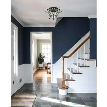 JEENKAE Boho Moroccan Moravian Star Flush Mount Ceiling Light Black, Seeded Glass Shade, 15-inch