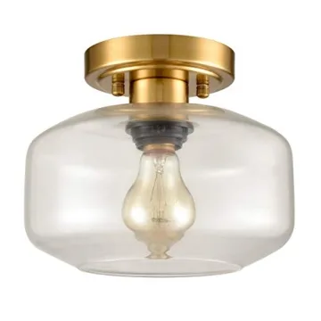 Show moreIntroducing the JEENKAE Modern Small Semi Flush Mount Ceiling Light, a stylish fusion of antique charm and modern elegance. This exquisite lighting fixture features a stunning open blown transparent drum shape glass shade that not only enhances visibility of the bulb but also adds a chic touch to any room. The brass finish on the mounting canopy gives this light a contemporary edge while maintaining a warm, inviting feel. Perfectly sized at just 8.66 inches wide and 7.4 inches high, this light is designed to seamlessly blend into various interior aesthetics, making it a versatile choice for hallways, bedrooms, kitchens, and more.