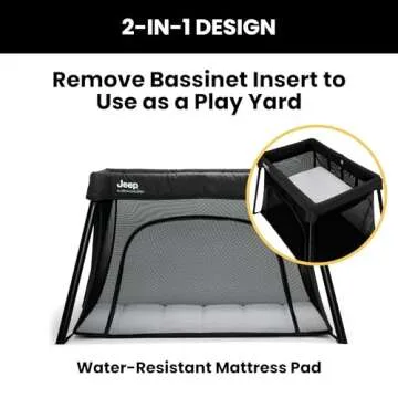 Jeep Horizon Compact Travel 2-in-1 Play Yard and Bassinet, Black