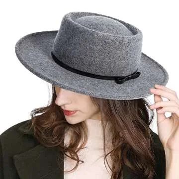 Show moreStep into the world of timeless elegance and contemporary style with the Jeff & Aimy Women's 100% Wool Felt Fedora Hat. Crafted from high-quality wool felt, this stunning hat embodies a perfect blend of vintage charm and modern sensibilities, making it an essential addition to any fashion-savvy woman’s wardrobe. Designed specifically to cater to both comfort and aesthetic, it boasts a classic pork pie silhouette with a substantial 3-inch, stiff brim that frames your face beautifully while offering sun protection. Whether you're dressing for a chic outdoor wedding, a casual tea party, or everyday errands, this versatile fedora elevates your ensemble effortlessly.