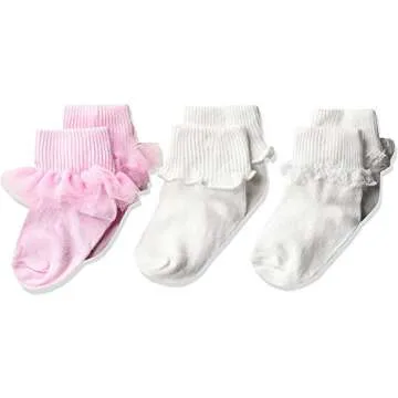 Jefferies Socks Girls' Ruffle/Ripple Edge/lace Baby Socks 3 Pack, Pink/White, 12-24 Months