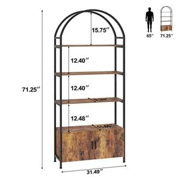 Jehiatek Arched Bookshelf, Bookcase with Doors Storage, 71 Inches Tall Industrial Book Shelf with Sturdy Metal Frame, E1 Quality Boards, Freestanding Display Shelving Unit, Rustic Brown