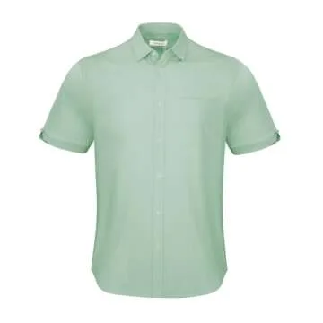 JEKAOYI Button Down Short Sleeve Linen Shirts for Men Summer Casual Cotton Spread Collar Beach Shirts Mint Green