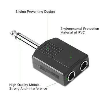 Jelanry 1/4" 6.35mm Stereo Plug Male to Dual 1/4" 6.35mm Jack Female Splitter Adapter, Dual 6.5mm Jack Adapter Audio Y Cable Splitter for Guitar, Microphone, Amplifier TAA Compliant Black 2Pack