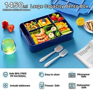 Jelife Bento Lunch Box for Kids - 1450ml Leakproof with 6 Compartments for School