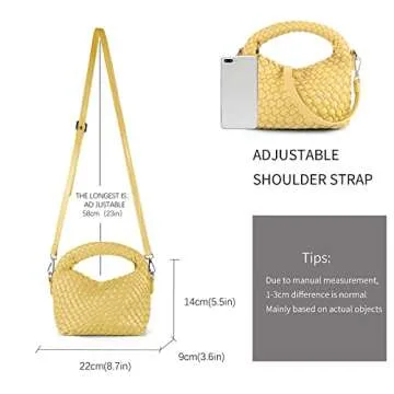 JELINK Small Woven Handbags Lightweight Women Shoulder Crossbody Bag Girls Purses Cassual Top Handle Bags Hobo Curved Tote (YELLOW)