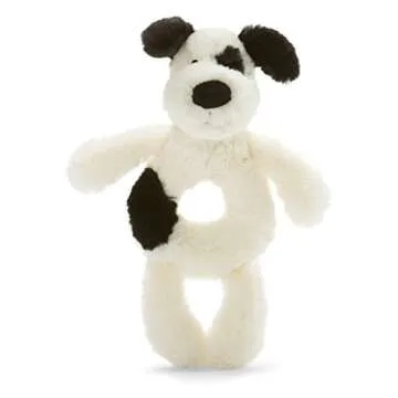 Jellycat Bashful Black and Cream Puppy Soft Plush Rattle for Babies