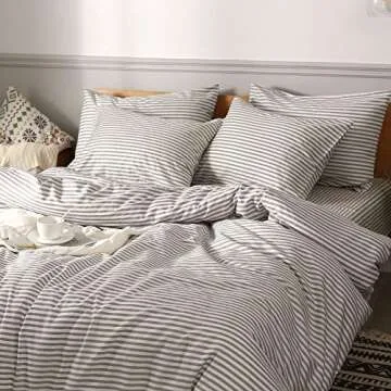 Show more Transform your bedroom into a cozy sanctuary with this exquisite Duvet Cover Set from a reputable brand, designed to enhance your sleeping experience. Crafted from 100% Natural Cotton, this duvet cover set not only offers unparalleled softness but also breathability, ensuring you stay comfortable throughout the night. The elegant White Duvet Cover with Grey Stripes presents a modern yet timeless aesthetic, making it an ideal addition to any decor style, especially for those who appreciate a farmhouse simplicity.