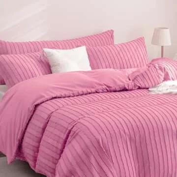 JELLYMONI Barbie Pink Duvet Cover King Size - 3PCS Microfiber Tufted Duvet Cover Set, Boho Striped Tufted Textured Duvet Cover with Corner Ties & Zipper Closure