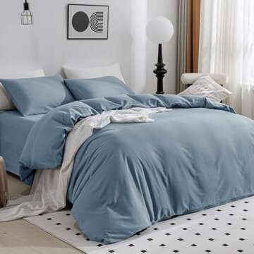 Show more Introducing the JELLYMONI Cotton Duvet Cover Set, a perfect blend of comfort and style that will transform your bedroom into a haven of relaxation. Crafted from 100% washed cotton, this bedding set offers unmatched softness that only gets better with every wash, making it a lasting addition to your home. Its breathable and moisture-absorbing properties ensure you stay cool and comfortable, regardless of the season. The grayish blue color elegantly complements various decor styles, particularly those leaning towards a vintage aesthetic, creating a warm and inviting atmosphere in any room.