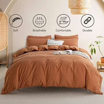 JELLYMONI Rust Pom Pom Fringe Queen Duvet Cover Set - Perfect Comfort Layer for All Seasons