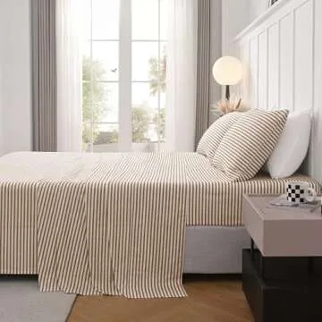 JELLYMONI Striped Sheets Set Queen Size, 4 Pieces 100% Cotton Bed Sheets - 16" Deep Pockets Fitted Flat Sheet & Pillowcase Bedding Set, Ultra-Soft, Machine Washable