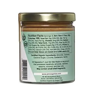 JEM Organics Cashew Cardamom Almond Nut Butter, Organic, All Natural, Gluten-Free, Vegan, Paleo, Keto Snack, 6 oz Jar, Single Pack
