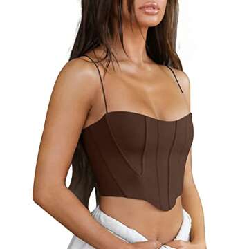 Jemer Bra Hippy Sexy Crop Top for Women Brown Trendy Coffee Going Out Spaghetti Bustier Cute Lingerie Coffee Country Concert Tank Cropped Tops Shirt Womens Clothes