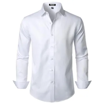 JEMITOP Men's Slim Fit Dress Shirt - Wrinkle Free, Long Sleeve, Solid White