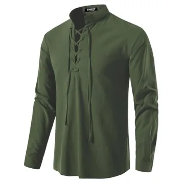 JEMITOP Men's Vintage Renaissance Costume Long Sleeve Lace Up Shirt – Army Green