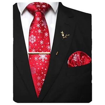 Show moreIntroducing the **JEMYGINS Festival Silk Necktie Set**, your go-to accessory for the festive season. This vibrant red tie beautifully showcases delicate white snowflakes, making it a standout piece for holiday gatherings. Crafted from a luxurious jacquard woven silk blend, this tie not only boasts a stunning appearance but also offers a silky smooth texture, ensuring comfort throughout the day. This fabulous gift set includes a matching pocket square, a classy tie clip, and an elegant lapel pin, all packaged in a sophisticated gift box, making it a wonderful choice for holiday gifting or personal use. With specific dimensions of 3.15" wide and 58" long for the tie, and a pocket square measuring 9 x 9 inches, this set is designed to complement any festive outfit effortlessly.