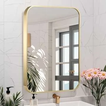 Show moreIntroducing the **JENBELY 24x36 Inch Gold Bathroom Mirror**, a stunning blend of modern elegance and practicality. Designed with a minimalist approach, this rectangular mirror features a beautifully brushed brass gold metal frame and rounded corners, ensuring it complements any decor style. Its sleek lines and sophisticated finish not only enhance your bathroom or living space but also deliver on functionality, making it the perfect addition to your home. With an impressive size of 24"x36", it captures and reflects light beautifully, providing an illusion of a larger space while maintaining a chic aesthetic.