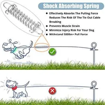 jenico Dog Tie Out Cable, 10/15/20/30/40/50/70/100/150FT Dog Runner Cable with Swivel Hook and Shock Spring, Dog Leash Run Tether for Yard Outdoor and Camping,for Small to Medium Pets Up to 500 LBS