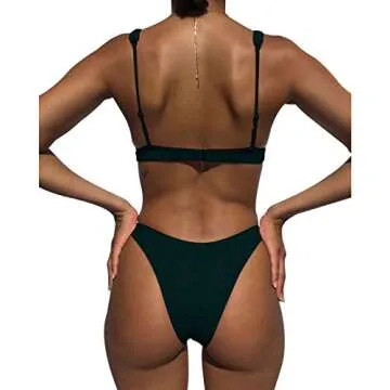 Jeniulet Women's Sexy Padded Brazilian Bikini Set - Dark Green