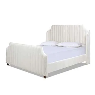 Show moreElevate your bedroom with the stunning Jennifer Taylor Home Addison King Paneled Bed Frame, a true masterpiece that combines style and comfort. Crafted with precision, this bed frame is designed to support both your sleep needs and your interior decor ambitions. Its tall winged headboard and matching footboard create a chic transitional look, making a bold statement in any space. The breathtaking Cloud White Performance Velvet not only enhances its visual appeal but also ensures durability and ease of maintenance. To top it all, this exquisite bed frame requires a box spring and mattress, providing a solid foundation for restful nights.