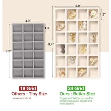 But that's not all – this DIYable Jewelry Display Tray features removable compartments, allowing customization to suit your personal storage preferences. Whether you own a handful of exquisite pieces or a vast collection, this organizer adapts to your needs, keeping everything neat and orderly. Its space-saving design means you can stack the trays together or slide them into a drawer, maximizing your space while enhancing organization.