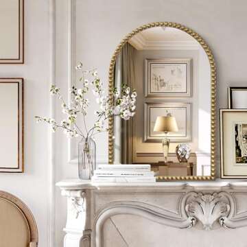 Jesantab Beaded Frame Arch Wall Mirror - Vintage Gold 24x36 Decorative Accent