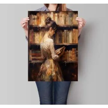 Jesicatmin Vintage Portrait Oil Painting Wall Art Retro Library Girl Reading Old Book Posters Famous Antique Female Canvas Pictures Prints Wall Decor Aesthetic for Bedroom Gallery 16x22in Unframed