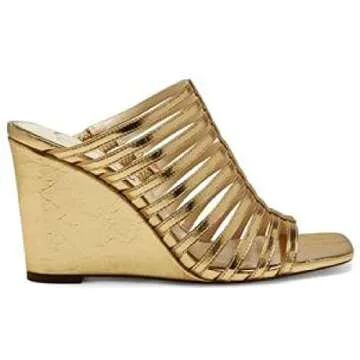 Jessica Simpson Arriya Women's Metallic Faux Leather Caged Wedge Sandals Gold 9