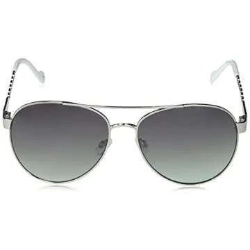 Show more Introducing the Jessica Simpson Women's J5999 Classy Metal Aviator Pilot Sunglasses, a stunning blend of fashion and function that elevates any outfit with its glamorous design. These exquisitely crafted sunglasses feature a luxurious chain-linked temple that adds an air of sophistication, ideal for the modern woman who values both elegance and practicality. Sporting a classic double brow bar, these shades not only bring a chic flair but are also designed with UV400 lens protection, shielding your eyes from harmful UVA and UVB rays, making them perfect for year-round wear, even on cloudy days when UV exposure can still be high. With a color range that transitions beautifully from smoke to green, these sunglasses are a must-have accessory for any stylish wardrobe.