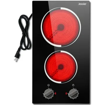 Jessier 2 Burner Electric Cooktop - Portable 12 Inch Ceramic Stove