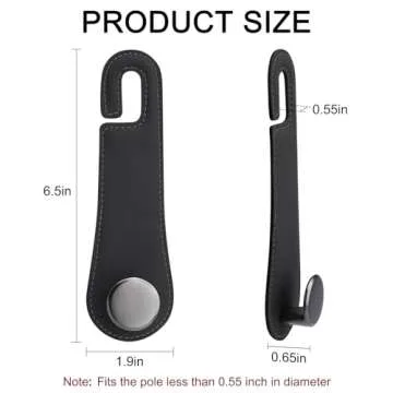JESTOP Car Headrest Hooks, 2 Pack Leather Car Seat Storage Hanger for Purses Bags, Stylish Car Seat Organizer Hooks for Handbag Coat Umbrellas, Car Inside Accessories, Black