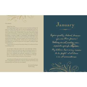 Show more Immerse yourself in the profound wisdom and spiritual nourishment of Jesus Calling – NEW – Commemorative Edition. This beautiful 365-day devotional brings readers a heartwarming journey through faith and reflection. Starting with the timeless messages from Sarah Young, this newly updated edition includes 12 brand new bonus devotions that further enrich your spiritual experience. Additionally, it features 12 heartfelt letters from the author, bridging the connection between the divine messages and the reader's personal journey. Your daily reflections are laced with peace, love, and hope, making every day a unique opportunity for growth and understanding.
