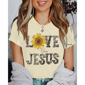 Jesus Shirt Funny Christian Shirts: Love Like Jesus Print Tee Religious Faith Short Sleeve Clothes Tops Beige