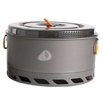 Optimized for use with Jetboil's Genesis and HalfGen cook stoves, the pot nests snugly over these burners for maximum heat efficiency and stability. Included is a convenient strainer lid and a protective skirt that shields the pot's sides during cooking. At 10 inches in diameter and 6 inches tall, this pot is designed to cook large meals quickly and effectively—perfect for family outings or group camping sessions.